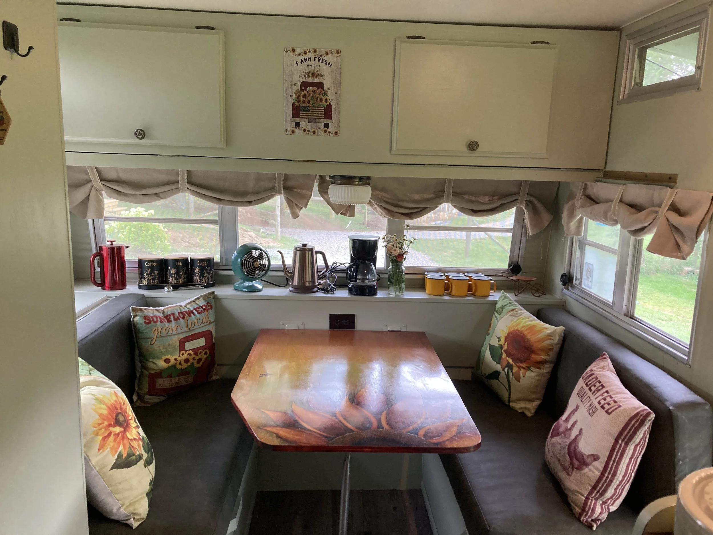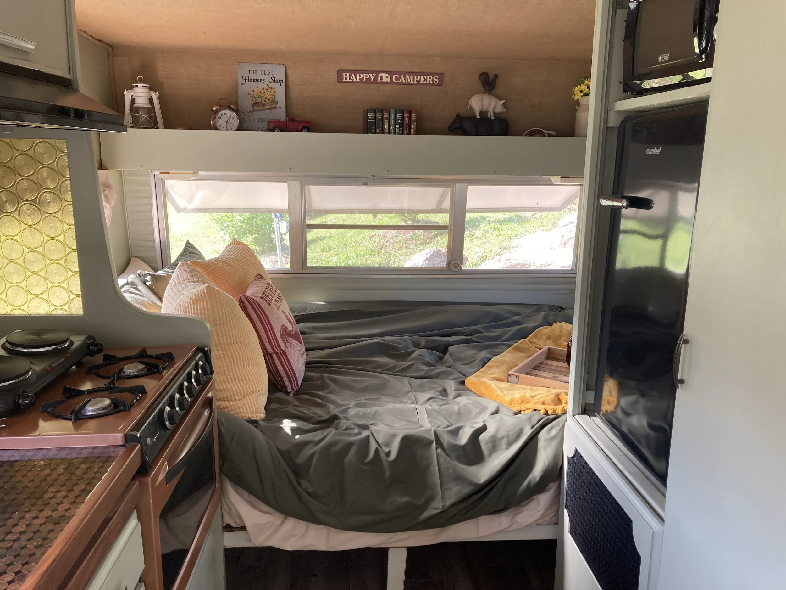Enjoy the sounds of the rolling mountain farm when you stay in our vintage 1975 camper. It’s a one-of-a-kind, all inclusive camping destination. Just bring your clothes and food and relax in our “everything is ready for you” camper nestled in the Smoky Mountains of WNC.